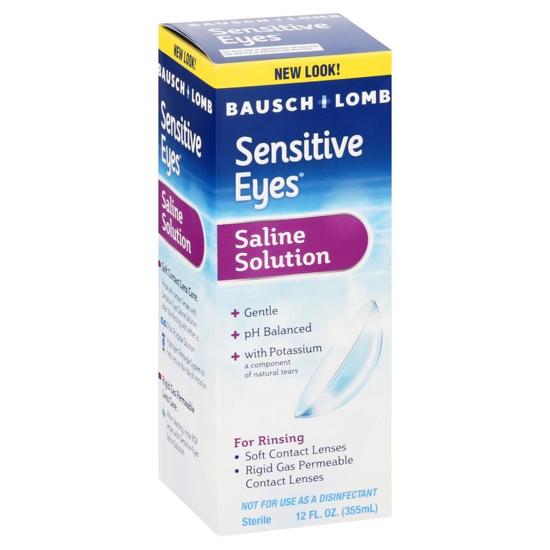 Soft Contact Lenses Care: Rinse soft contact lenses with sensitive eyes saline solution after disinfecting with either a: Multi-purpose solution; hydrogen peroxide system to help reduce the risk of irritation. Rigid Gas Permeable Lens Care: After cleaning, rinse RGP lenses with sensitive eyes saline solution. No sorbic acid and no thimerosal. Sensitive eyes saline solution has gentle pH-balanced formula which contains potassium, an ingredient found in natural tears.