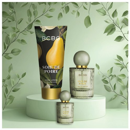 A refreshing blend of crisp green tea and juicy pear drifts into a smooth heart of suede and earthy moss, settling into a warm embrace of amber and cedarwood. Sophisticated yet effortless, BCBG Soie de Poire Eau de Parfum by BCBGMAXAZRIA feels like a quiet moment of pure elegance.