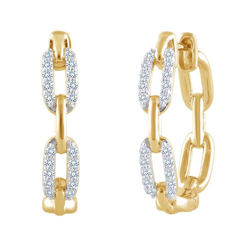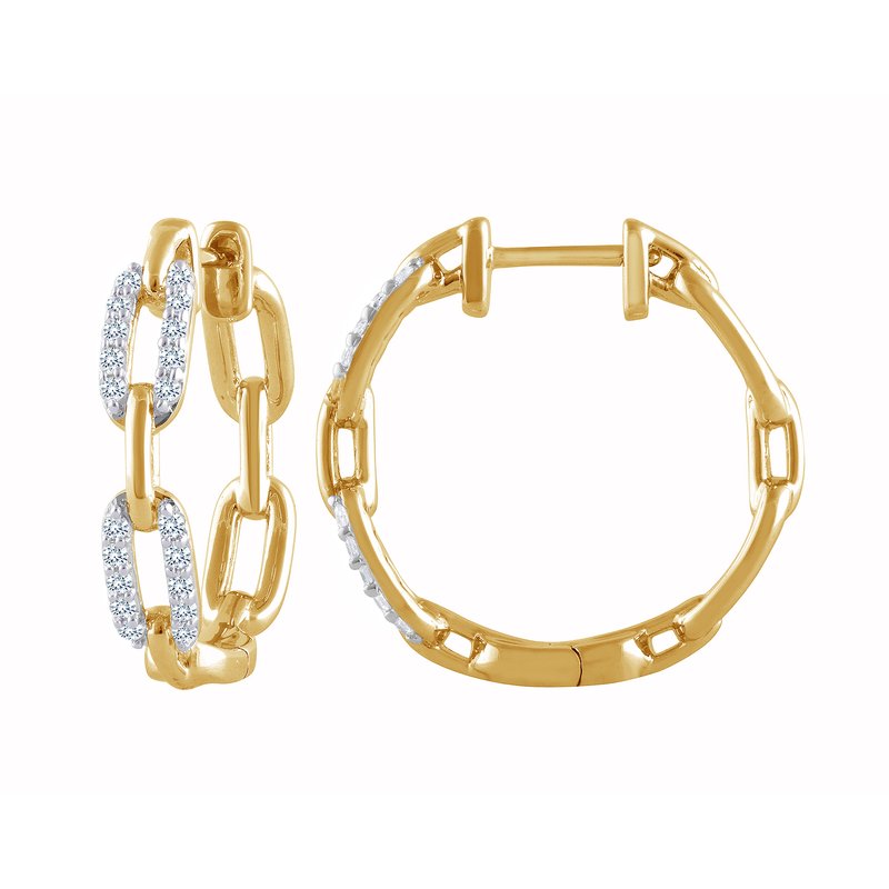 For the modern sophisticate, these diamond hoop earrings are a must-have. In 14K gold, each hoop features oval-shaped "links" with alternating polished and diamond-lined finishes from our Because by Navy Star® collection. Ready to wear your way with 1/4 ct. t.w. of diamonds, these earrings secure with hinged backs.