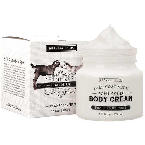 Our goat milk whipped body cream just melts into your skin. Creamy butters moisturize and soften skin. Goat milk is rich in vitamins and minerals. Unscented. Whipped Body Cream is 8 fl oz.