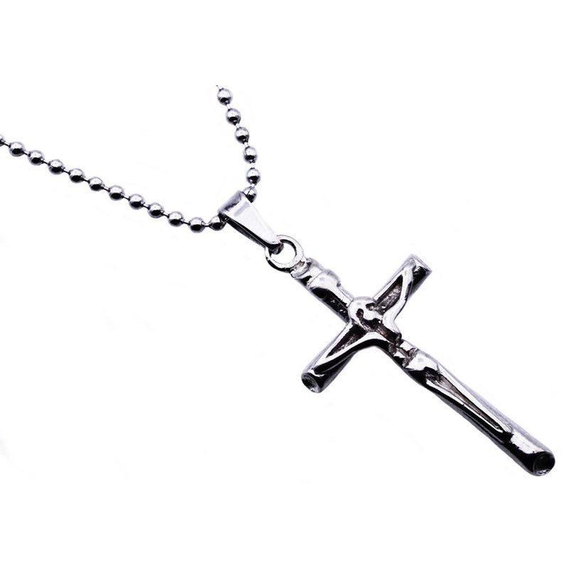 Blackjack Men's Stainless Steel Mini Crucifix Pendant with Bead Chain