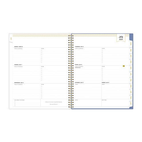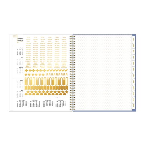 Simple and elegant, this academic planner comes with stickers and a storage pocket to keep everything in place. Refresh your routine with the 2025-2026 weekly monthly planner from Day Designer for Blue Sky. New for the school year, this large planner features the Flutter butterfly pattern with gold foil elements on a flexible cover and a clear pocket sleeve to help you customize the cover with your photos or artwork.
