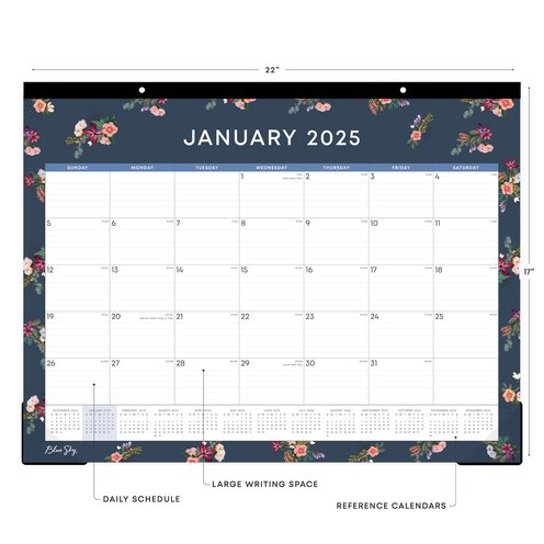 This 2025 desk pad calendar is a perfect tool to track deadlines, birthdays, and events. Shows one month per page with ruled daily blocks, reference calendars, and major holidays.