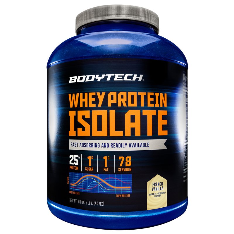 You work hard for your fitness. That’s why it’s so important to fuel your body with fast-digesting, low-calorie, high-quality protein like Whey Protein Isolate from BodyTech®. Each scoop of this easy-to-mix formula delivers 25g of protein and a high concentration of BCAAs to support post-workout recovery. Good tasting AND good for your goals, this delicious French Vanilla-flavored protein has just 1g of fat and sugar per serving.