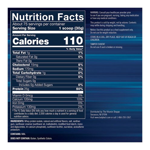 You work hard for your fitness. That’s why it’s so important to fuel your muscles with a fast-digesting, low-calorie, and high-quality protein like Whey Protein Isolate from BodyTech®. Each scoop of this easy-to-mix formula delivers 25g of protein and a high concentration of BCAAs to support muscle growth and post-workout recovery.