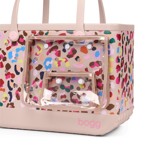 Durable and tip-proof, it stands upright, wipes clean, and keeps up with whatever your day throws at it. Sand brushes off. Spills don't stick. Includes two clear insert bags—perfect for organizing smaller essentials like your phone, sunscreen, keys, or snacks. Pair it with our full line of Bogg accessories—dividers, toppers, coolers, makeup bags, and more—to build your ultimate carryall kit.