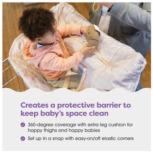 Everyday shopping trips and restaurant visits become cozy adventures with the soft, cushioned Boppy® Shopping Cart Cover and high chair cover. With 360° coverage, SlideLine® toy tether and wiggle-proof elastic corners, keeping your little one ick-free and entertained in the aisles or at the table just got a whole lot easier.