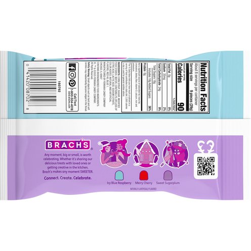 Add some sweetness to your celebrations with Brach's® Swirled Gum Drops. Each pack of these soft jelly gum drops includes 3 festive flavors: Merry Cherry, Icy Blue Raspberry, and Sweet Sugarplum. Give them as a gift or use them as stocking stuffers to make every moment a little extra merry and bright.