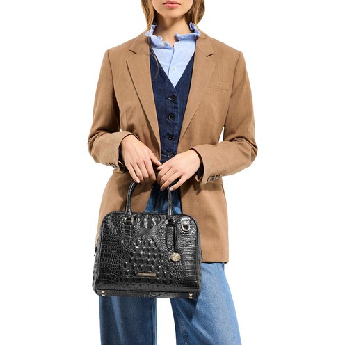 The Marissa is a statement-making satchel with a soft dome silhouette and wide zip top opening. A roomy interior and multiple pockets keep your essentials organized, from pens to makeup and more. Stash your phone in the back slide-in pocket for easy access (so you'll be ready to hop on a work call or answer a quick text from your BFF). Carry by the comfy rolled handles or with the adjustable strap for an effortless hands-free look. Features Zip top closure, rolled handles, removable adjustable strap, back slide-in pocket, two organizer pockets, interior zip pocket, pen loops, key clip.