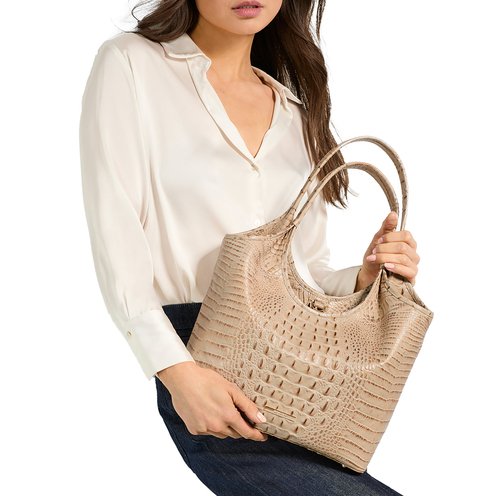 Melora is a slightly smaller iteration of our ultra-chic Iona tote. Melora has all the features we love in Iona � the vintage-inspired feminine silhouette, easy key clip closure, and convenient back slide in pocket all make this an easy go-to for every day. The smaller silhouette is still spacious and slightly more compact for lightweight ease.�