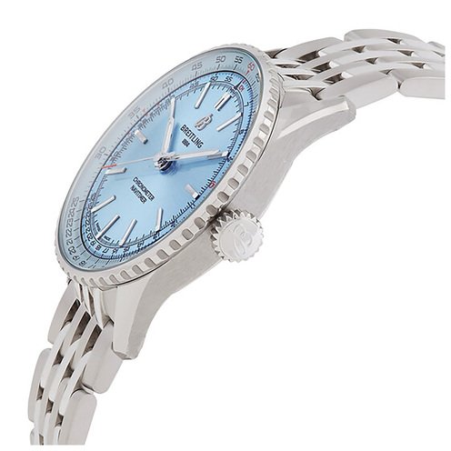 Men's Breitling Navitimer. 41mm stainless steel case. Stainless steel bracelet. Light Blue dial. Swiss Automatic movement.