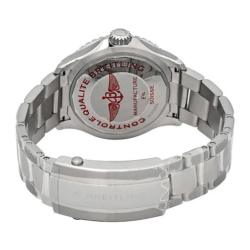 Men's Breitling Superocean. 42mm stainless steel case. Stainless steel bracelet. Black dial. Swiss Automatic movement.