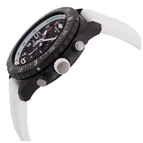 Ladies Breitling Endurance Pro. 38mm black breitlight case. White rubber strap. Black chronograph dial with date display. Swiss Quartz Chronograph movement.