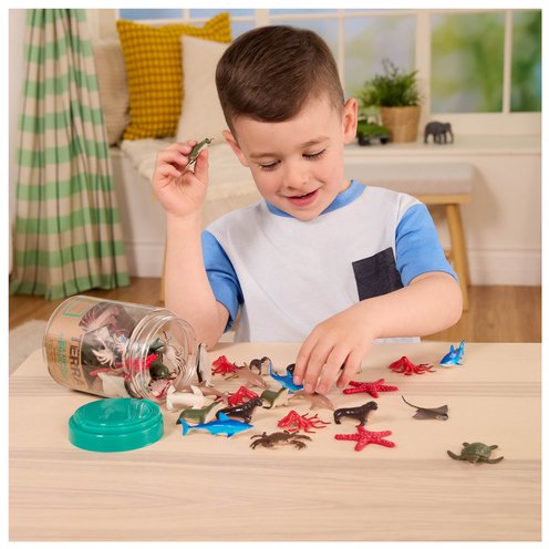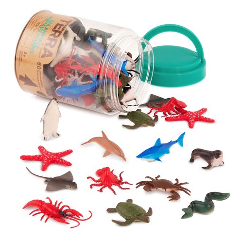 Dive into Terra by Battat's fun Sea Animals in a tube! With 60 fish toys and sea creature miniatures, you will have plenty of great gifts and goodie bag stuffers for a fish-themed kids' party! The plastic toy animals are also realistic and accurate depictions of the real thing, so they're perfect diorama supplies or educational toys for students researching ocean life. You'll find amazing replica toy sea snakes, toy starfish, toy lobsters, and even the shy and elusive toy octopus! No animal toy collection is complete without Terra by Battat's Sea Animals in a Tube! Recommended for little ones aged 3 years old and up.