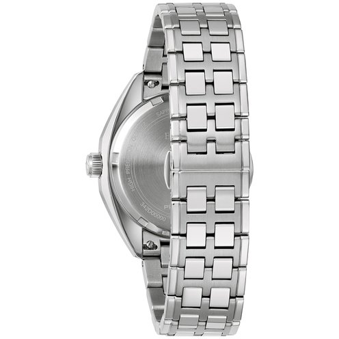 Straight from the 1970s comes the Bulova 1973 Jet Star, an iconic model from the brands impressive history, now equipped with an equally impressive movement. Borrowing from its historic forebear, the stainless steel case features a striking angular design with broad facets and a domed sapphire crystal. The magnificently claret sunburst dial is accented by a black chapter ring, applied black and red hour markers, and matching silver tone and red hands. Luminescent plots at each hour and fill in the hands allow for exceptional legibility in every environment, while a date display sits perfectly at 3 o'clock. The new Jet Star is powered by Bulova's Precisionist movement, a revolutionary 8-jewel quartz mechanism vibrating at a remarkable 262kHz, accurate to 5 seconds per month with increased resistance to temperature changes, and with a sweeping seconds hand. Complementing the stainless steel case is a matching bracelet with a deployant clasp closure and latched spring bars for easy release. Strut your stuff in legendary style with the high-flying Bulova 1973 Jet Star, a legendary design recreated for the modern connoisseur.