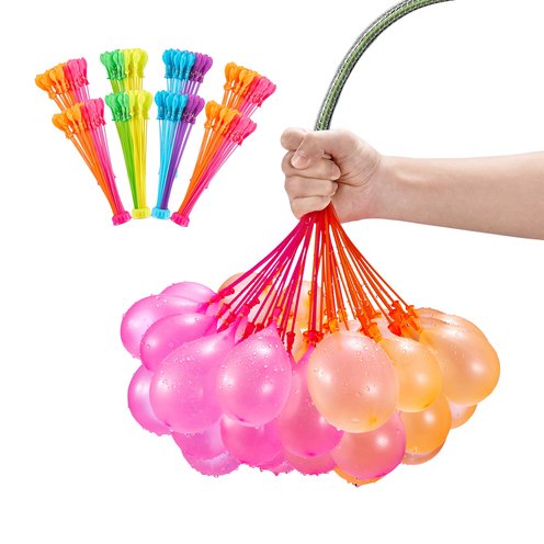 - Quick Fill: Splash into Summer with Bunch O Balloons. Fill and Tie 100 balloons in 60 seconds to start a Tropical Party in minutes! Simply attach the stem to a hose and make hundreds of water balloons in seconds.