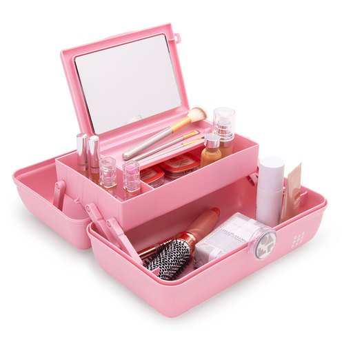 With bold colors and a little extra sparkle, you’ll always be ready to organize and shine. This On-The-Go Girl™ features an auto-open tray with flip lid and mirror, spacious interior storage, and a secure latch so your beauty routine is right on.