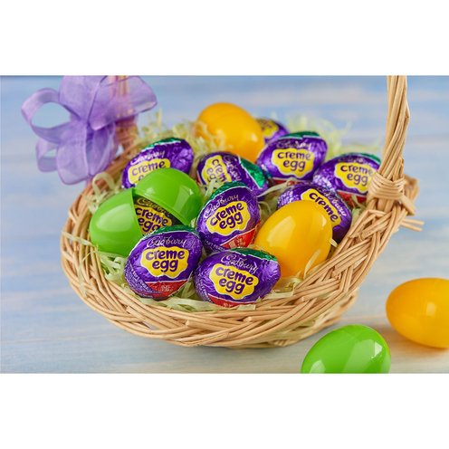 If you're planning an Easter celebration full of classic traditions like Easter baskets and egg hunts, you need classic chocolate treats like CADBURY CREME EGG milk chocolate candies. These delicious seasonal candy snacks are made of creamy milk chocolate with gooey, soft fondant centers. Thanks to their egg shape and seasonal foil, they'll fit in perfectly with each of your Easter festivities, from egg hunts and parties to baskets and candy buffets. Fill your candy dish, lunch box and snack cabinet at home and work with delightful chocolate eggs individually wrapped for lasting freshness throughout the season. Don't forget to save a few for on-the-go enjoyment and your next movie night snack collection for a treat Peter Cottontail would approve of. In the sharing spirit? Make Easter baskets for your co-workers, friends and family members, and perfect each basket with a CADBURY creme-filled egg they're sure to love.