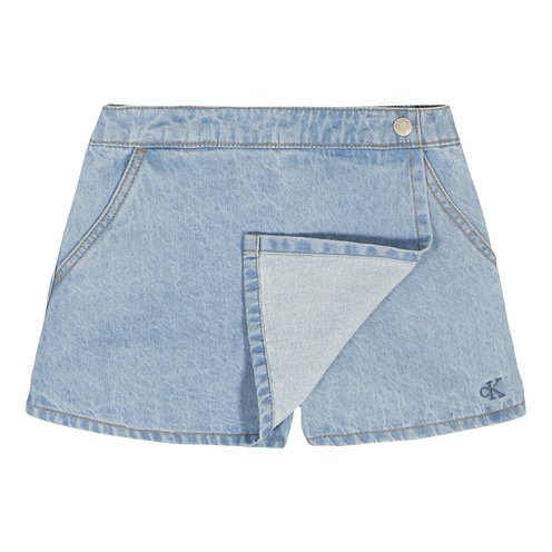 Sweet chic styling in Calvin Klein denim, this cropped vest features deep V and cropped design, matched with a back elastic skort, paired with a ribbed tee featuring lettuce-edge trim.