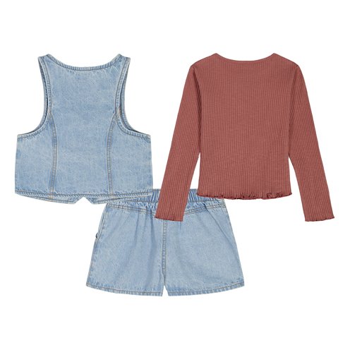Calvin Klein Toddler Girls' Vest Denim Skort Set, 3-Piece