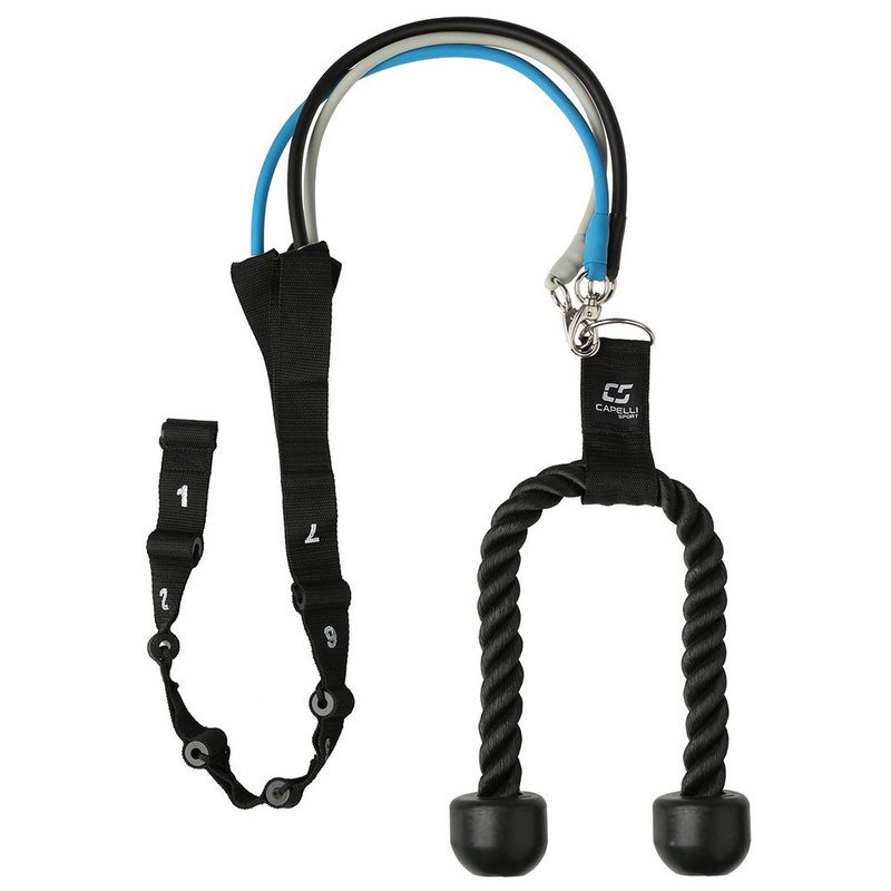 The Tricep Crunch has three levels of resistance tubing that can be combined or used seperately to let you customize your workout to the appropriate amount of resistance. The portable size lets you take your workout anywhere and use the tricep crunch in a variety of motions.