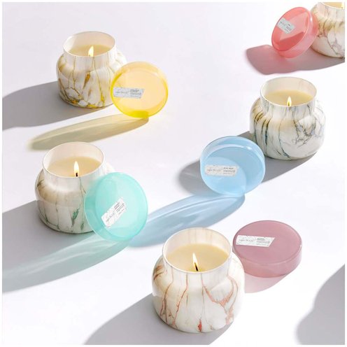 The Modern Marble jar features a chic, contemporary design on our classic signature silhouette. Each candle is topped with an elegantly chic glass lid. With seven colors to choose from, you can't go wrong.