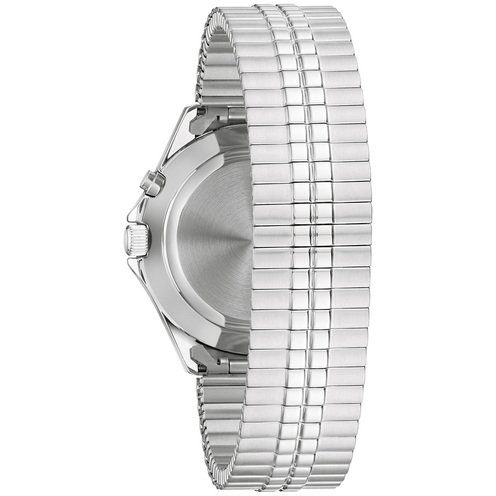 Caravelle Men's Expansion Band Bracelet Watch, features a back lit dial with day, date and Military time. The hands are luminous for added visibility. Water resistance to 30M.