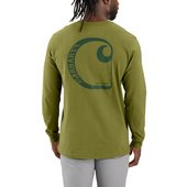 A spin on Carhartt's beloved pocket tee, this men's long-sleeve graphic t-shirt features a Carhartt "C" in back. Made from soft, heavyweight fabric for comfort all day. Built for a relaxed fit that's cut closer to the body.