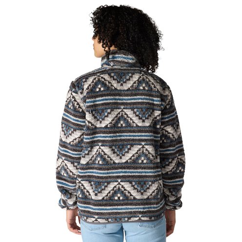 Pull on this women's fleece pullover when the temps drop. It has a loose fit that's made to layer. Elastic cuffs help seal out cold air, and zipper pockets keep work-day essentials secure.