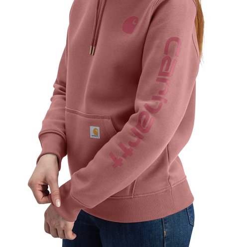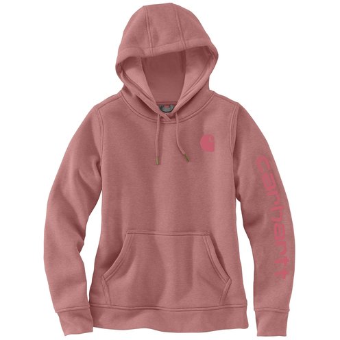 Cold winter mornings are a lot more comfortable with this women's cozy hoodie. Made of heavyweight fleece, the sweatshirt is brushed on the inside for extra softness. It has a relaxed fit that allows for easy layering, and it's finished with a Carhartt logo down the sleeve.