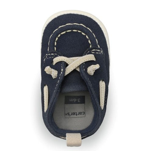Complete your child's outfit in style with this Navy Boat Shoe from Carter's. Great for casual or dressy looks. The faux laces make for an easy on and off design feature so your little one can get right to playing!