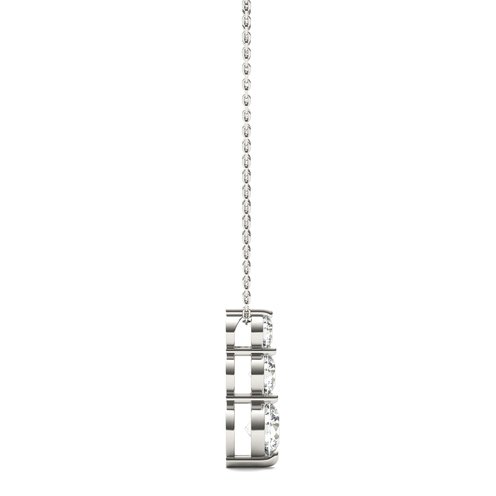 This elegant 1.29 ct. Moissanite Three Stone Pendant Necklace crafted in sterling silver features three dazzling moissanite stones, symbolizing past, present, and future. Its timeless design and radiant sparkle make it a perfect accessory for any occasion.�