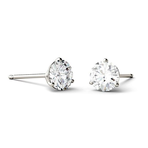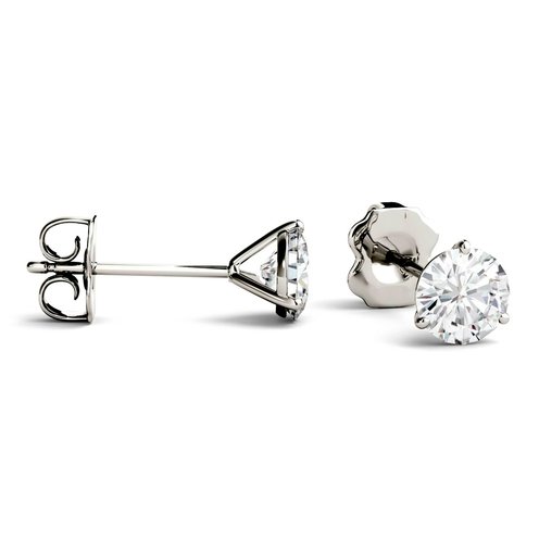 Stunning and classy is the perfect description for these one carat moissanite stud earrings. These earrings have a post style and friction backs set in a three prong martini setting.
