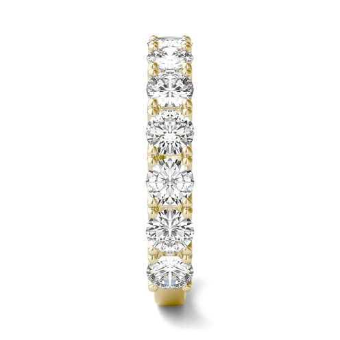 With no beginning and no end, this yellow gold band will symbolize your love. Wrapped in gemstones, it will beautifully accent any engagement ring or make a stunning statement worn solo.