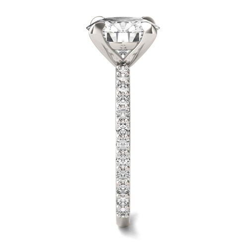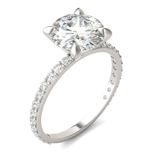 Its classic design and timeless elegance make it the perfect symbol of love for your special proposal. This 2.62 ct. Engagement Ring in 14K white gold showcases a brilliant round-cut moissanite gemstone, complemented by sparkling side stones.