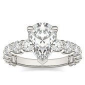 This Trellis Engagement Ring crafted in 14K white gold features a captivating pear-cut moissanite center stone, set in a delicate trellis design. The elegant setting enhances the gemstone�s brilliance, making it the perfect choice for an unforgettable proposal.