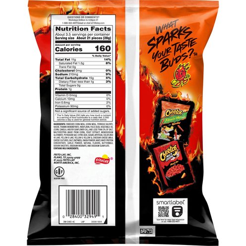 Gluten free. What sparks your taste buds? Cheetos Flamin' Hot Limon; Cheetos Mac 'N Cheese Flamin' Hot.