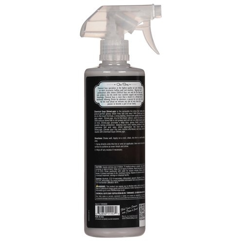 Chemical Guys ShineLogic™ is your go-to tire shine for achieving a glossy black finish with minimal effort. This non-greasy formula provides a rich, dark shine that lasts. ShineLogic™ ensures a showroom-quality shine that resists running, giving your tires a high-shine look for longer. Its durable protection and deep gloss finish transform your tire care routine into a quick and satisfying task, always delivering professional results
