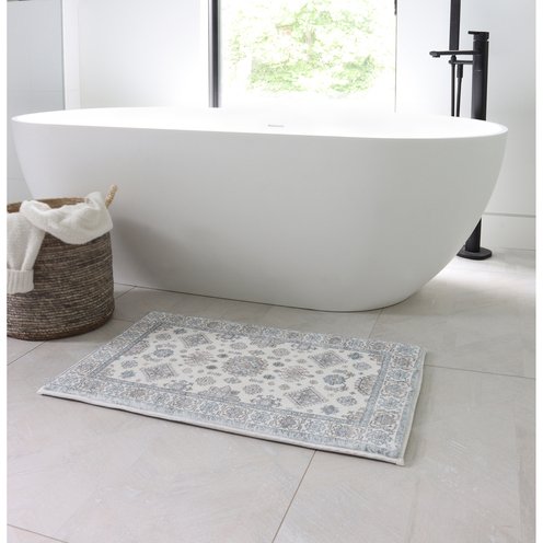 The Memory Foam Cilantro Bath Mat features a simple modern design with simple neutral tones. Its plush, cushioned feel offers comfort and support while adding a contemporary touch with a rustic feel.
