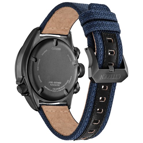 The right tool for the toughest terrain, meet the Promaster Altichron, the latest adventure-ready timepiece to join Citizen's Promaster Land series. From its bold case inward, the watch is ready for action, featuring a 47mm Super Titanium™ case with a black DLC coating for durability that goes the distance. On the dial, bright accents against a navy background ensure high legibility, while touches of yellow detailing add a pop of color. Two left side pushers and a 4 o'clock crown help the user operate Promaster's high-performance function on the display, which includes an advanced metric altimeter, electronic compass function, and daily-focused date window. The Promaster Altrichron is sustainably powered by any light with our proprietary Eco-Drive technology, so it never needs a battery. Water resistant up to 200 meters. Caliber J280