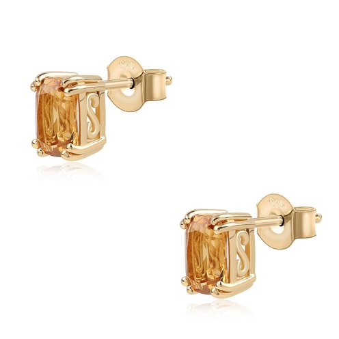 Celebrate the month of November with this elegant citrine stud earrings. Skillfully crafted in lustrous 18k yellow gold over sterling silver, the intricate antique cut citrine is secured in 4-double prongs setting. Perfect earrings for everyday wear and a must-have addition for all jewelry lovers' wardrobes.