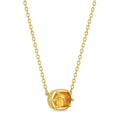 A classic look, this necklace is always the right choice. Crafted in sterling silver with yellow gold plating.The hexagon design is centered with 7.0x5.0 oval-shaped Citrine soldered on an diamond cut cable chain with lobster closure.