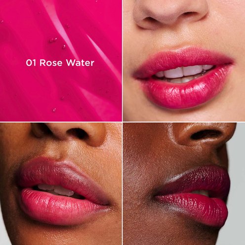 New Exclusive Water-Shot Complex - a blend of Hyaluronic Acid and Organic Raspberry Water - leaves lips 49% more hydrated and helps soften for comfortable, supple lips.