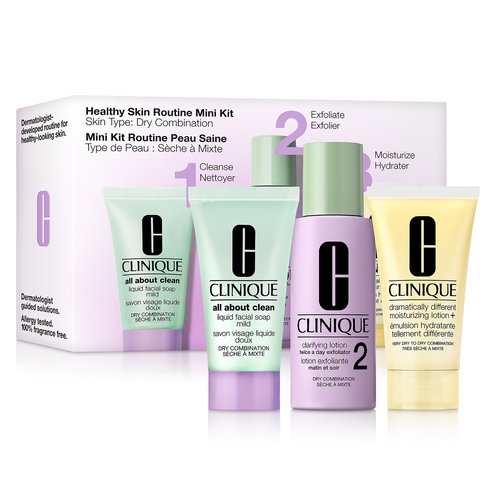 Clinique's Healthy Skin Routine for drier skin types includes 3 steps to clean, healthy-looking skin.