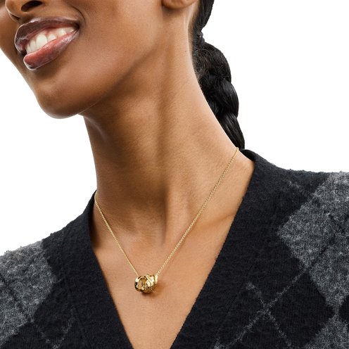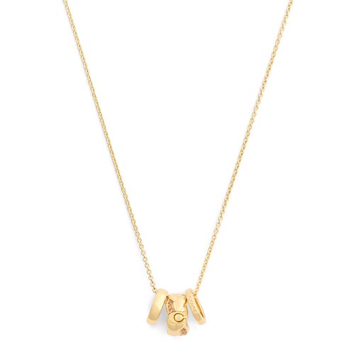 Refined chain necklace featuring mixed rondelles with braided texture and signature sculpted C motif perfect for everyday. Adorned with minimal stones for a sparkly touch. Necklace has an adjustable lobster clasp closure. Made from brass and glass crystal.