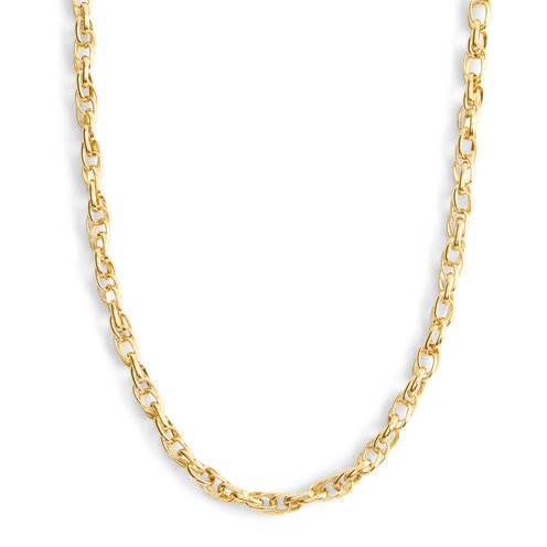 Sophisticated collar necklace featuring refined interlocking links with brushed finish perfect for everyday. Necklace has an adjustable lobster clasp. Made from brass.