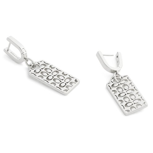 Sophisticated drop earrings featuring u-huggie paired with dangling iconic hangtag charm adorned with cut out quilted signature sculpted C motif. Posts are made from hypoallergenic titanium posts perfect for everyday. Earrings have a hinge closure. Made from brass and titanium.