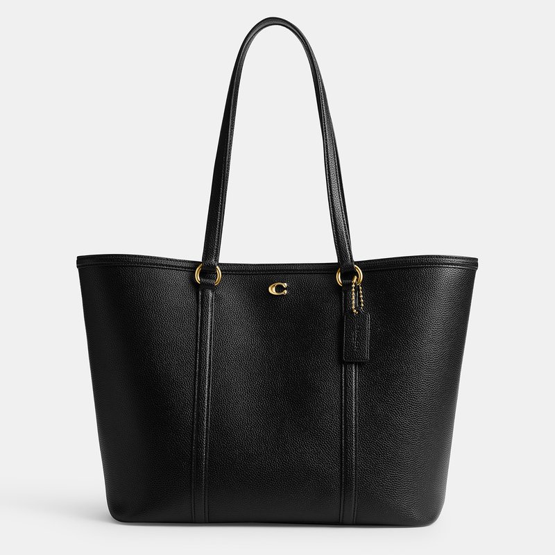 An iconic Coach silhouette, our Legacy Tote is the perfect everyday bag for work, weekends and travel. Featuring long slender shoulder straps, a convenient outside zip pocket for easy access to essentials and an inside snap pocket for organization, it has space for a 16" laptop and more. The secure zip-top design is crafted of refined pebble leather detailed with our Signature hardware.