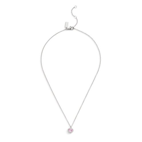 Refined chain necklace featuring vibrant red faceted stone halo heart pendant perfect for everyday. Necklace has an adjustable lobster clasp closure. Made from brass and glass crystal. Includes signature COACH jewelry dustbag.