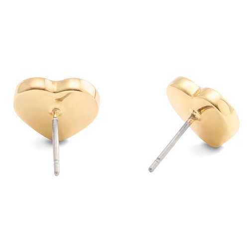 Playful stud earrings featuring timeless quilted heart bag with minimal signature sculpted C hardware and hypoallergenic titanium posts perfect for everyday. Earrings have a post back closure. Made from brass and titanium.